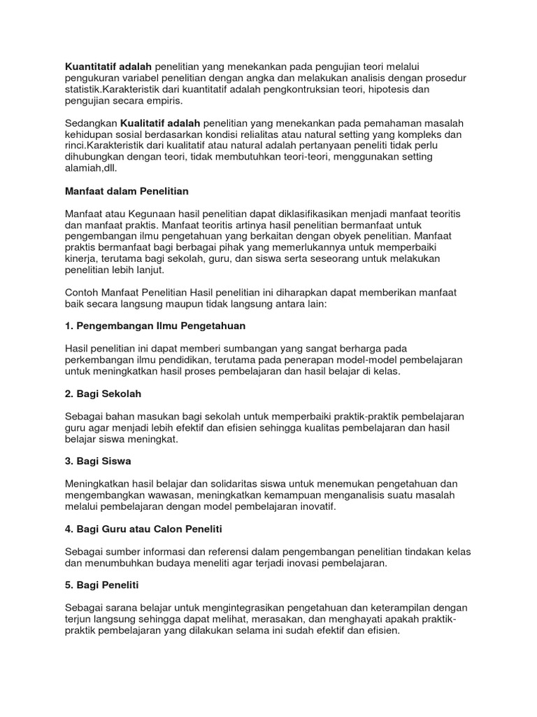 Manfaat teoritis, berlatar dari tujuan penelitian varifikatif untuk memverifikasi teori yang sudah ada. Manfaat penelitian ini erat hubungannya dengan tujuan penelitianoleh karenannya hampir setiap karya tulis baik skripsi makalah karya ilmiah proposal penelitian dan lain sebaginya selalu menyertakannya. Jul 31, 2021 · posting pada s1, sma, umum ditag bab 1 manfaat akademis, bab 1 manfaat penelitian, contoh bentuk dan strategi penelitian, contoh kegunaan penelitian, contoh kuantitatif, contoh makalah yang ada manfaat penulisan, contoh manfaat aplikatif, contoh manfaat penelitian, contoh manfaat penelitian kuantitatif, contoh manfaat teoritis dan praktis dalam. Manfaat praktis bermanfaat bagi berbagai pihak yang memerlukannya untuk memperbaiki kinerja, terutama bagi sekolah, guru, dan siswa serta seseorang untuk melakukan penelitian lebih lanjut. Untuk mengaplikasikan ilmu yang telah diperoleh selama menempuh pendidikan di perguruan tinggi raharja dengan membuat laporan penelitian secara ilmiah dan sistematis.